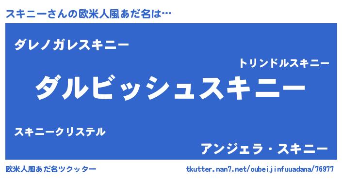 | 男性向けラノベタイトル風あだ名 | 『スキニーという概念が存在しない退屈な世界 』 |