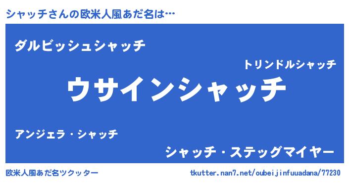 | 男性向けラノベタイトル風あだ名 | 『シャッチの嫁は女の子じゃないと思った?』 |