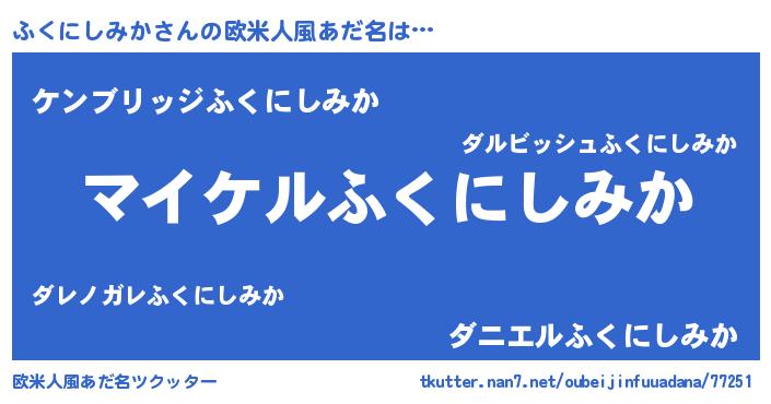 | ヘコむあだ名 | 『ふくにゅー』『ふくにしみか(震え声)』 |