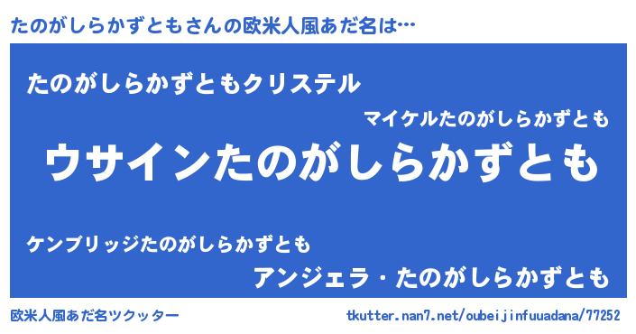 | 意味不明あだ名 | 『とにかく怪しいたのがしらかずとも』 |
