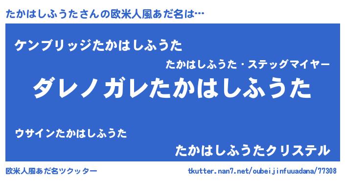 | 男性向けラノベタイトル風あだ名 | 『この素晴らしい世界にたかはしふうたを!』 |