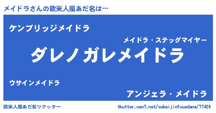 | 男性向けラノベタイトル風あだ名 | 『この素晴らしい世界にメイドラを!』 |