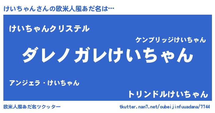 | 男性向けラノベタイトル風あだ名 | 『この素晴らしい世界にけいちゃんを!』 |