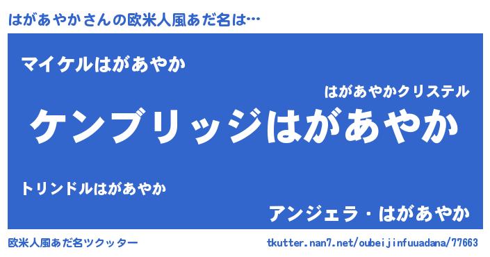 | 意味不明あだ名 | 『自称はがあやか』『ペロリンはがあやか』 |