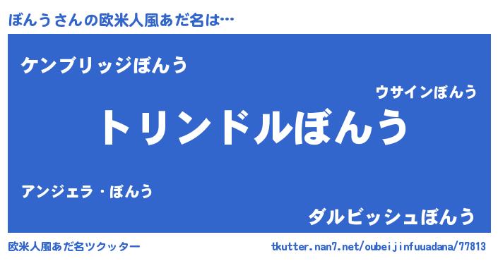 | 男性向けラノベタイトル風あだ名 | 『転生したらぼんうだった件』 |