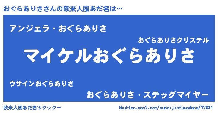| 男性向けラノベタイトル風あだ名 | 『オグラアリサアートオンライン』 |