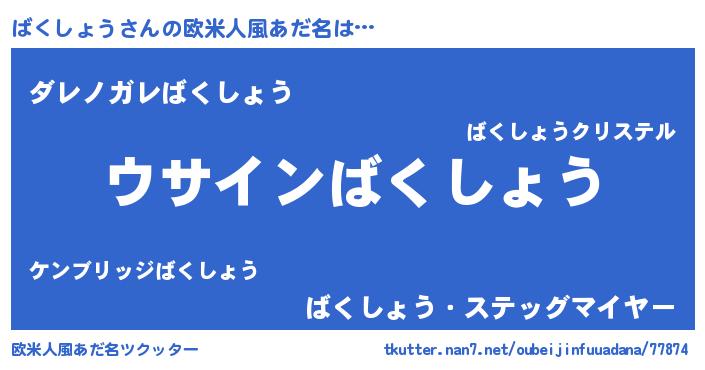 | 女子向けラノベタイトル風あだ名 | 『ばくしょう様がみてる』 |