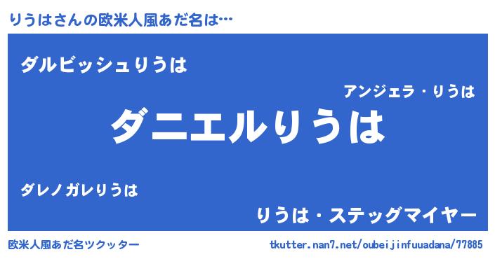 | 男性向けラノベタイトル風あだ名 | 『ノーゲーム・ノーリウハ』 |