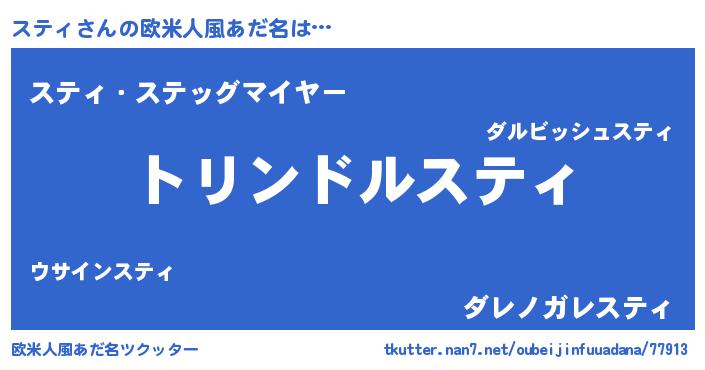 | 男性向けラノベタイトル風あだ名 | 『転生したらスティだった件』 |