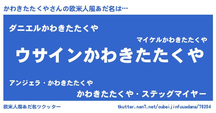 | 女子向けラノベタイトル風あだ名 | 『かわきたたくやは平凡を望む』 |