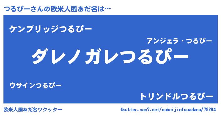 | 男性向けラノベタイトル風あだ名 | 『魔弾の王とつるぴー』 |