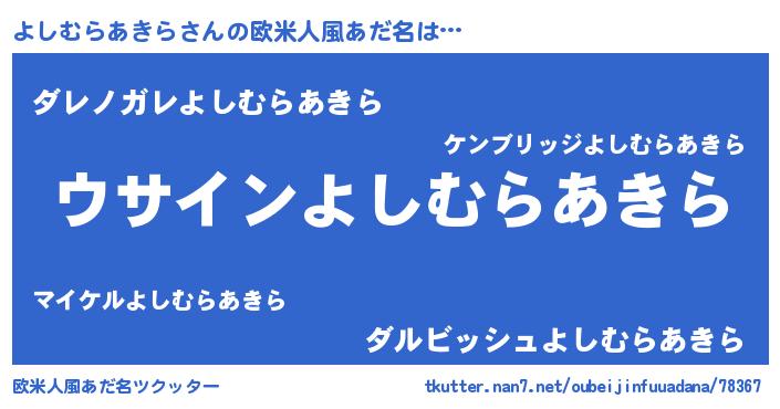 | 男性向けラノベタイトル風あだ名 | 『よしむらあきらの嫁は女の子じゃないと思った?』 |