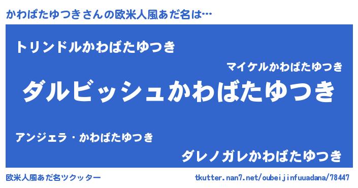| ファンタジー風あだ名 | 『カワディッシュ』『ユリカワヴァット』 |