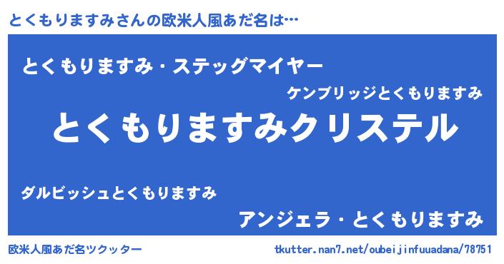 | 肩書あだ名 | 『とくもりますみ総理大臣』 |