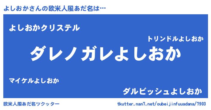 | 男性向けラノベタイトル風あだ名 | 『魔弾の王とよしおか』『よしおかの憂鬱』 |