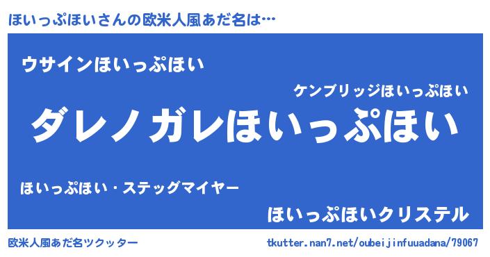 | 意味不明あだ名 | 『住所不定無職ほいっぷほい(6歳)』 |