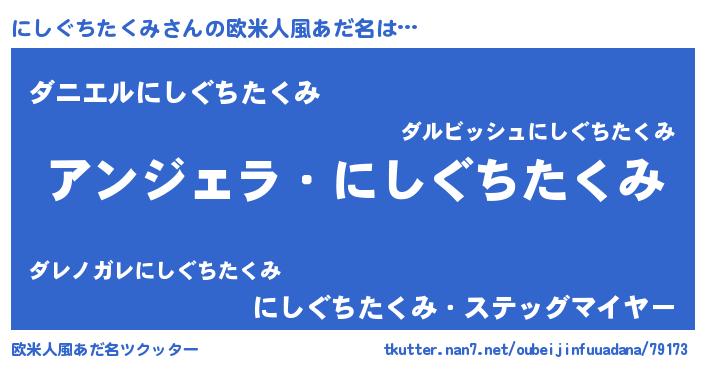 | ヘコむあだ名 | 『にしぐちたくみ(笑)』『にし太郎』 |