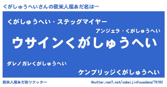 | 男性向けラノベタイトル風あだ名 | 『くがしゅうへいの嫁は女の子じゃないと思った?』 |