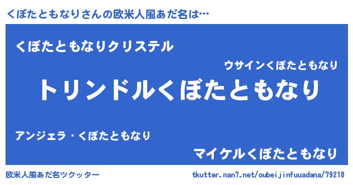 | 女子向けラノベタイトル風あだ名 | 『くぼたともなりの玉の輿計画!』 |