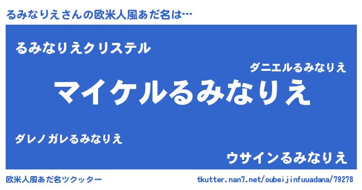 | 女子向けラノベタイトル風あだ名 | 『るみなりえ姫と円卓の騎士』 |