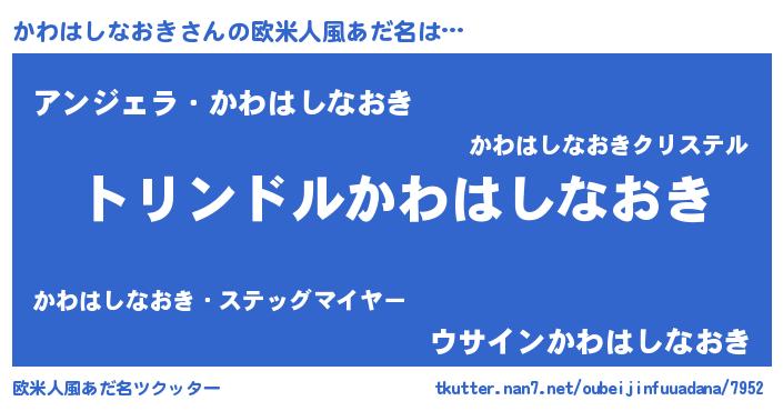 | 男性向けラノベタイトル風あだ名 | 『カワハシナオキスレイヤー』 |