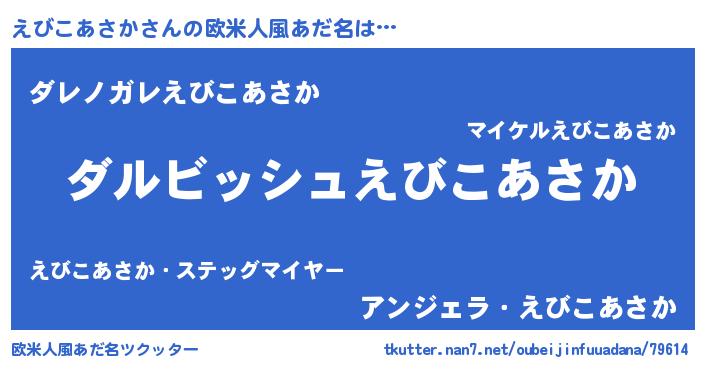 | 男性向けラノベタイトル風あだ名 | 『えびこあさかという概念が存在しない退屈な世界 』 |