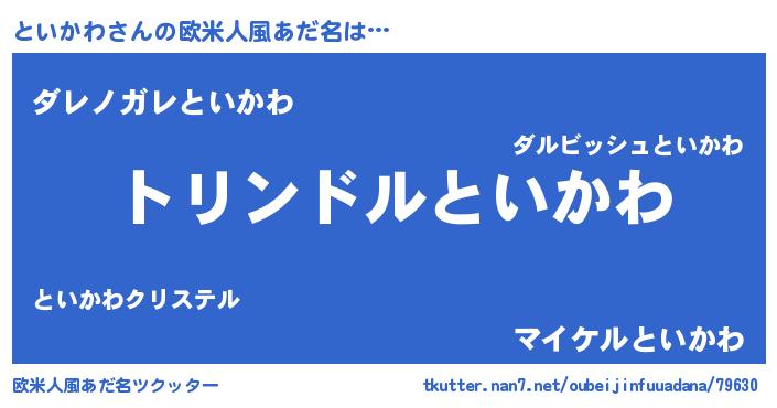 | 男性向けラノベタイトル風あだ名 | 『といかわ~年齢イコール彼女いない歴の魔法使い~』 |