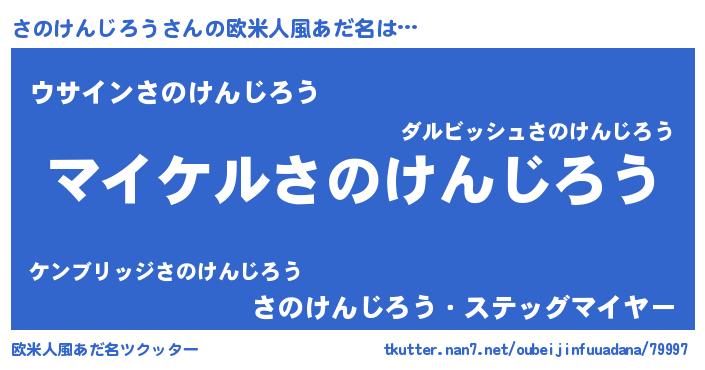 | 男性向けラノベタイトル風あだ名 | 『サノケンジロウアートオンライン』 |