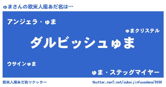 | 男性向けラノベタイトル風あだ名 | 『ゅまという概念が存在しない退屈な世界 』 |