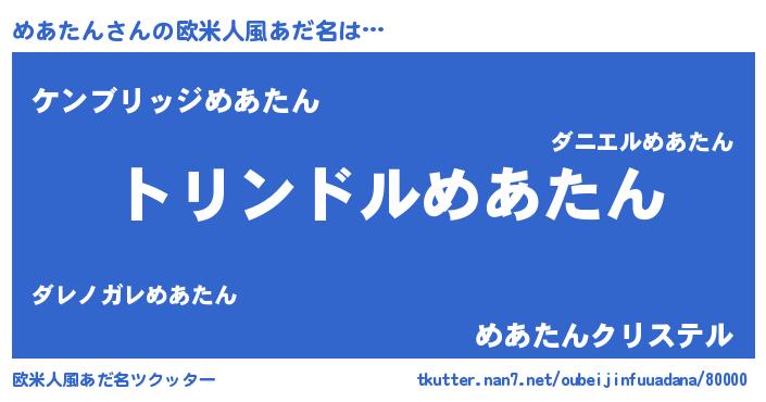 | 男性向けラノベタイトル風あだ名 | 『転生したらめあたんだった件』 |