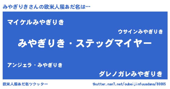 | ヘコむあだ名 | 『みやにー』『みやお』『酢こんぶ』 |