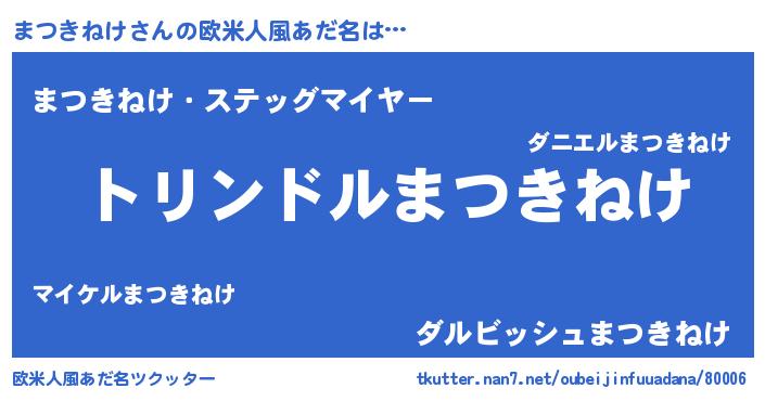 | 胡散臭い通販商品みたいなあだ名 | 『絶対に幸福をもたらす招き猫…その名も「まつきねけ」』 |