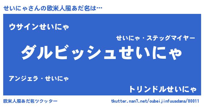 | 胡散臭い通販商品みたいなあだ名 | 『絶対に幸福をもたらす健康食品…その名も「せいにゃ」』 |