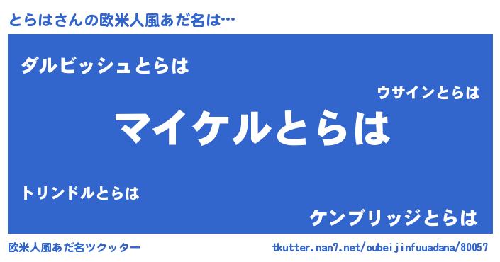 | 男性向けラノベタイトル風あだ名 | 『とらはの憂鬱』『トラハスレイヤー』 |
