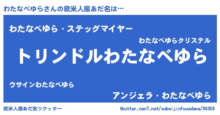 | 男性向けラノベタイトル風あだ名 | 『転生したらわたなべゆらだった件』 |