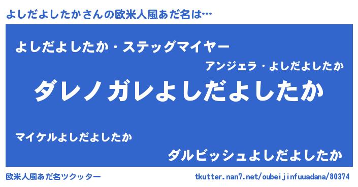 | 女子向けラノベタイトル風あだ名 | 『悪役よしだよしたかに転生したようですが、知った事ではありません』 |