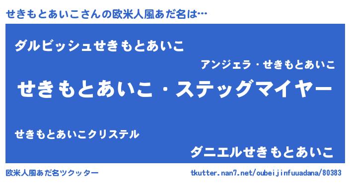 | 意味不明あだ名 | 『永久保存せきもとあいこ』 |