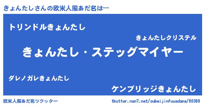 | 男性向けラノベタイトル風あだ名 | 『うちのきょんたしが世界を掌握している!』 |
