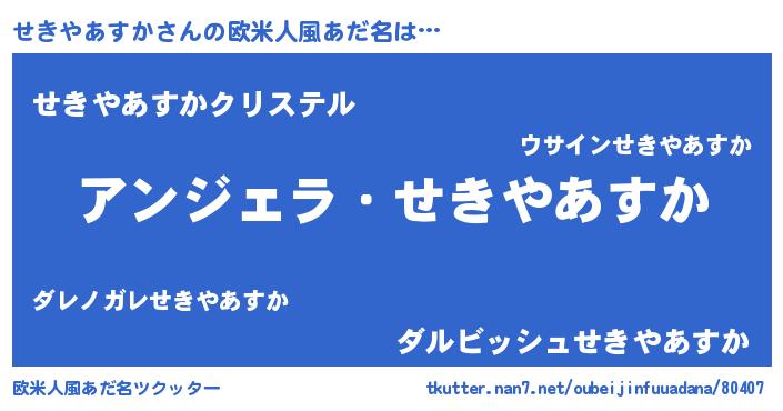 | 意味不明あだ名 | 『せきやあすかフォーエバー』 |