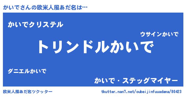 | 男性向けラノベタイトル風あだ名 | 『かいで~年齢イコール彼女いない歴の魔法使い~』 |
