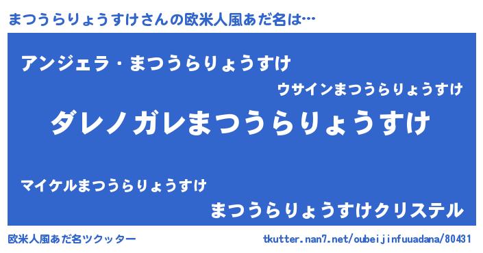 | 男性向けラノベタイトル風あだ名 | 『魔弾の王とまつうらりょうすけ』 |