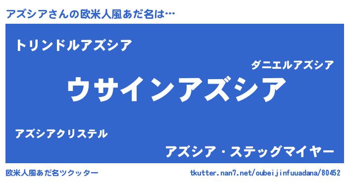 | 男性向けラノベタイトル風あだ名 | 『ダンジョンにアズシアを求めるのは間違っているだろうか』 |