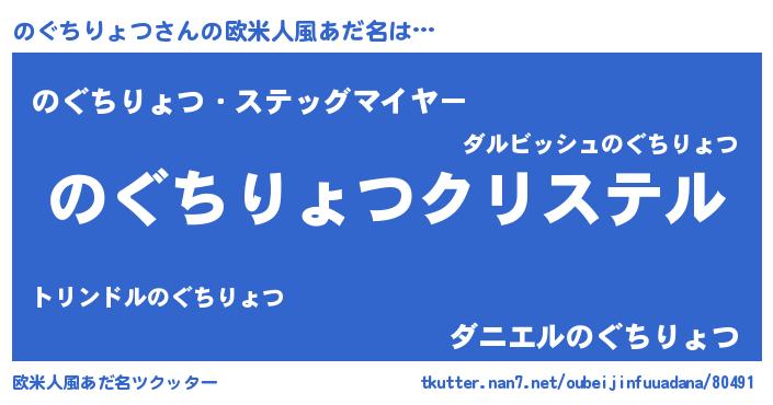 | ファンタジー風あだ名 | 『エターナルノグチリョツー』 |