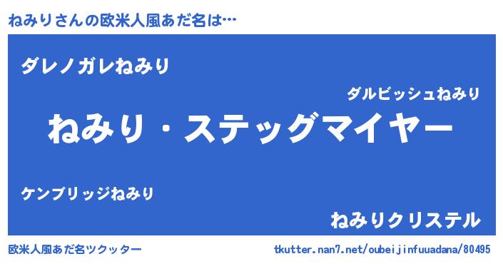 | 男性向けラノベタイトル風あだ名 | 『緋弾のネミリ』『魔弾の王とねみり』 |