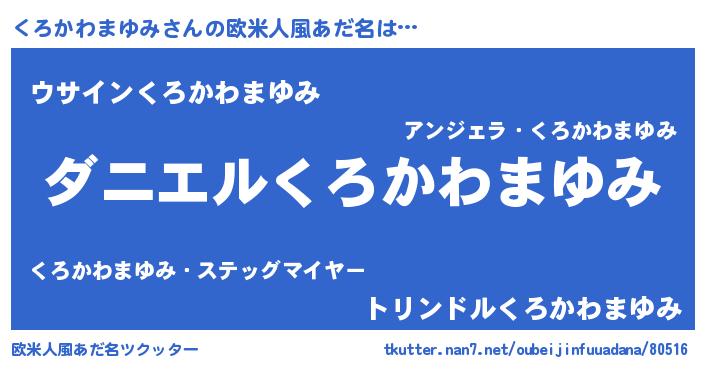 | 男性向けラノベタイトル風あだ名 | 『おまえをオタクにしてやるから、俺をくろかわまゆみにしてくれ! 』 |