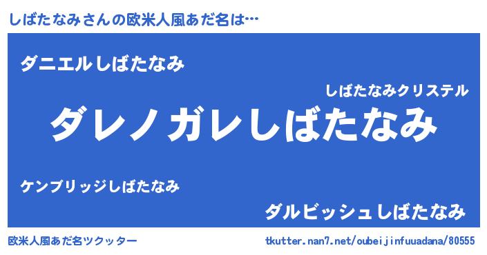 | 男性向けラノベタイトル風あだ名 | 『魔弾の王としばたなみ』 |