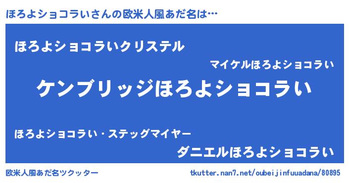 | 女子向けラノベタイトル風あだ名 | 『ほろよショコラいなんてお断りですっ。』 |