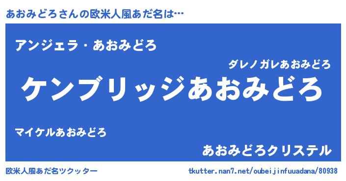 | 男性向けラノベタイトル風あだ名 | 『Re:あおみどろから始める異世界生活』 |