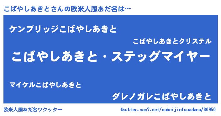 | 男性向けラノベタイトル風あだ名 | 『うちのこばやしあきとが世界を掌握している!』 |