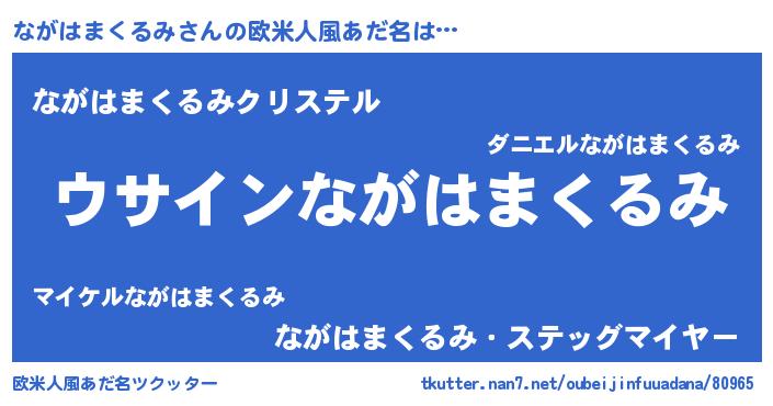 | 男性向けラノベタイトル風あだ名 | 『ながはまくるみの嫁は女の子じゃないと思った?』 |